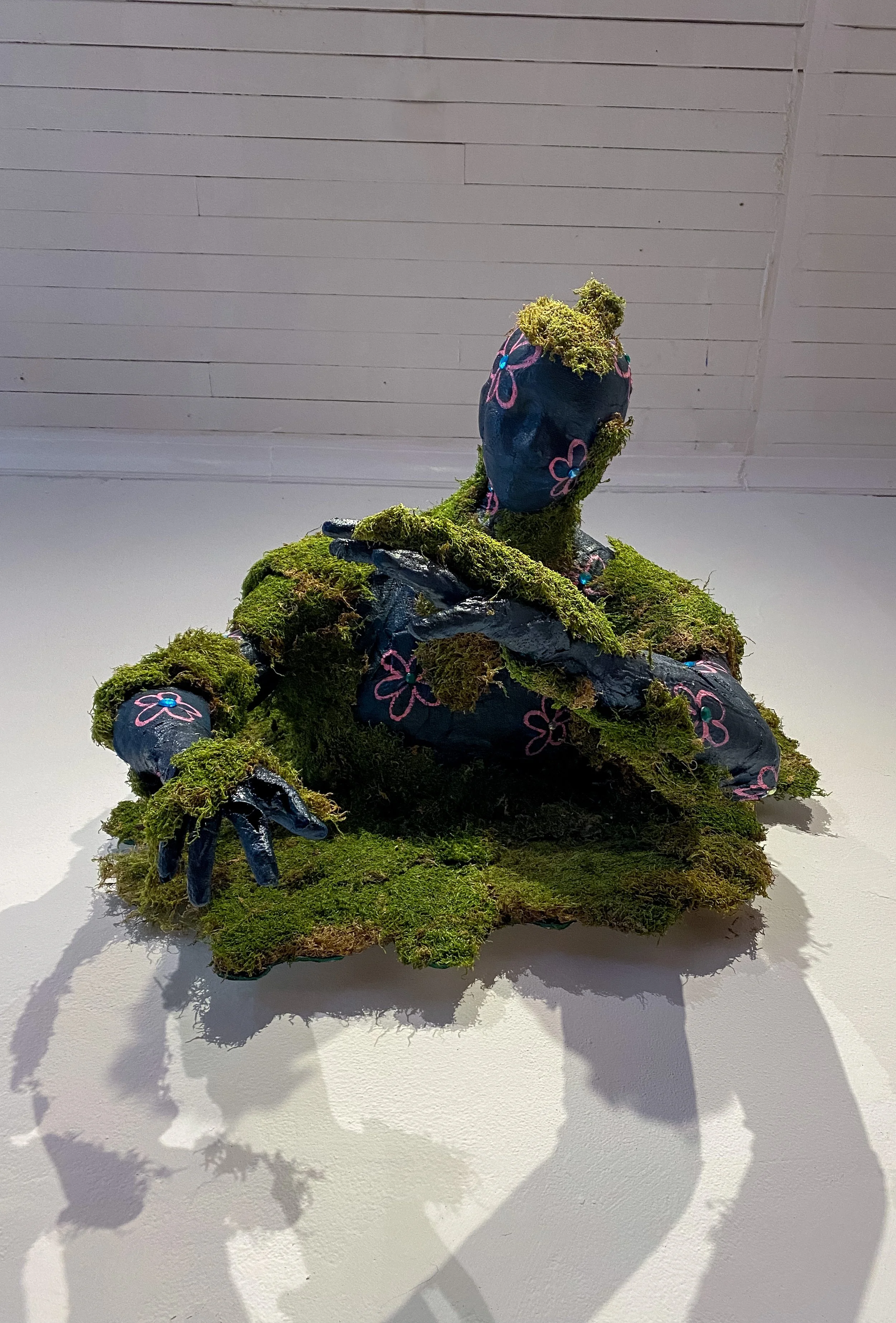 Emerging into Queertopia, 2022Mounted sculpture, 35” x 44” x 22”Wood, plaster gauze, decorative moss, chicken wire, jewels